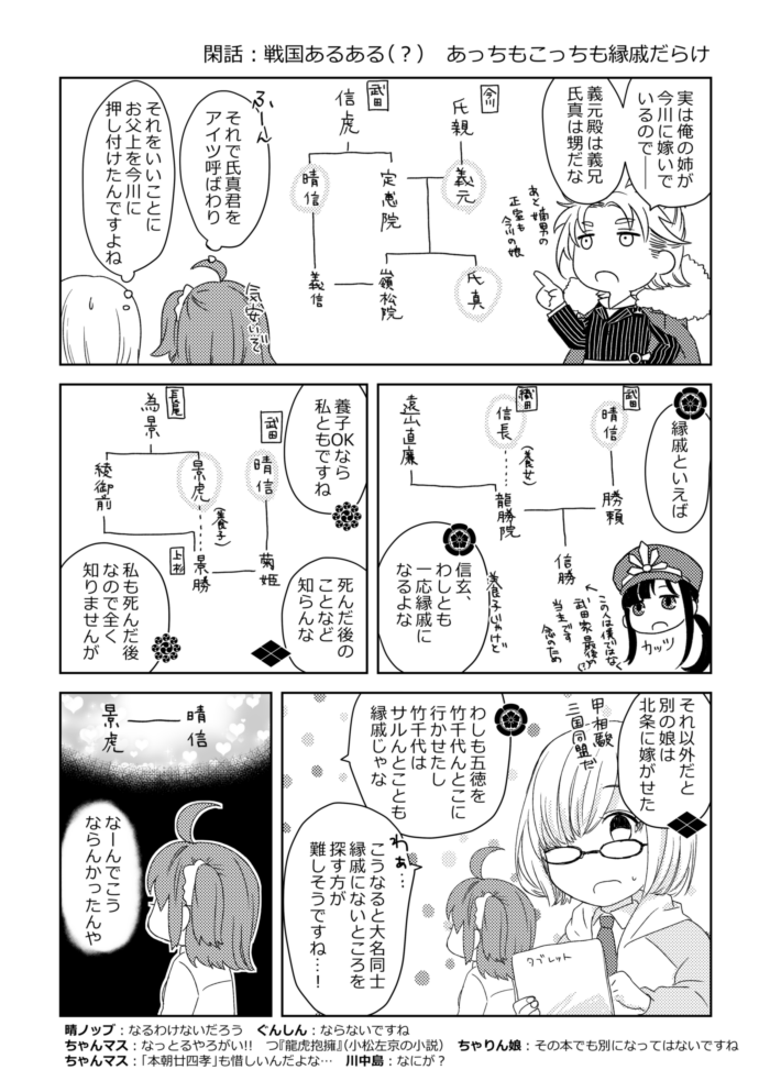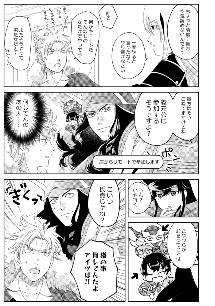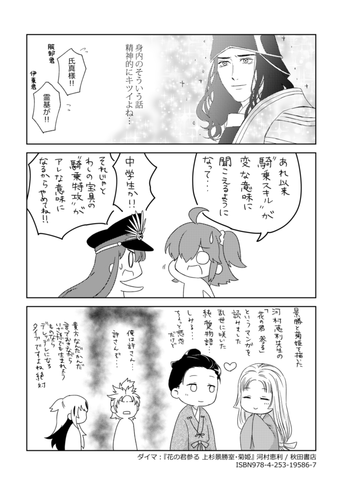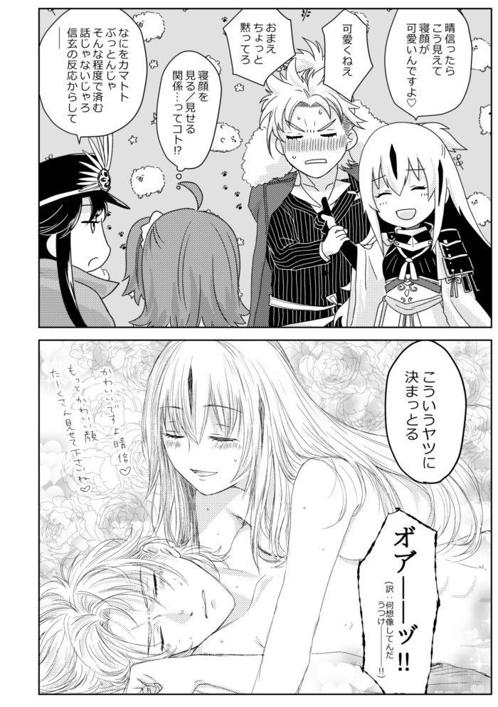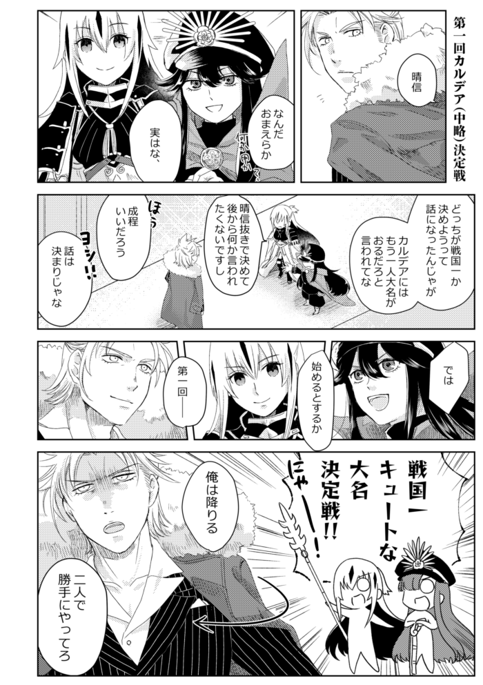 第一回カルデア(中略)決定戦 朗報!この先景虎攻めあり!晴信が受け受けしい!BL読まんから受け受けしいかどうか知らんけど! 側室複数人当たり前の時代に正室一筋の人はそれだけで推せる……(ギュッ) (絵文字・感想をいただけると大変はげみになります:WAVEBOX)