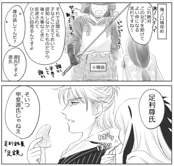 晴信の初陣から始まるけどめちゃくちゃガッチガチに緊張している晴信、とてもいい。軍神ちゃんは絶対緊張とかしないで初陣から戦場を縦横無尽に八面六臂の大活躍だろうけど、晴信のそういう人間臭いところ無茶苦茶いいと思います!あと不愛想で忍従~みたいな性格も。立ち回りが下手な若いころの姿が後々海千山千権謀術数の壮年期につながるのかな~楽しみだな~