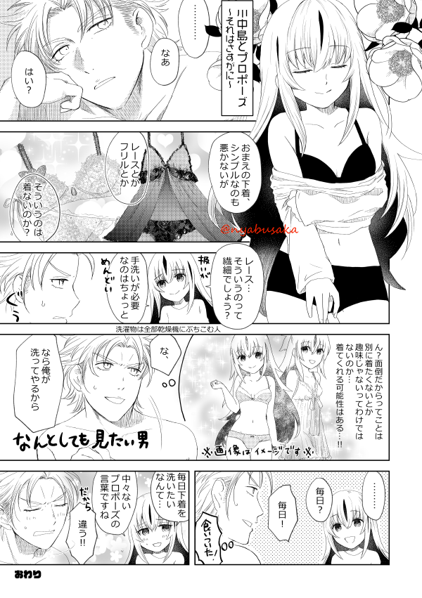 川中島はこんなことしない – 川中島とプロポーズ 2025/1/26 おまけ1枚追加 2枚目はややセンシティブかもしれない これにて年内の更新は終了です(よっぽどのことがない限り) どうぞみなさまよいお年をお迎えください。 景虎「乾燥機に耐えられないような軟弱な子はうちにはいません」 (絵文字・感想をいただけると大変はげみになります:WAVEBOX)