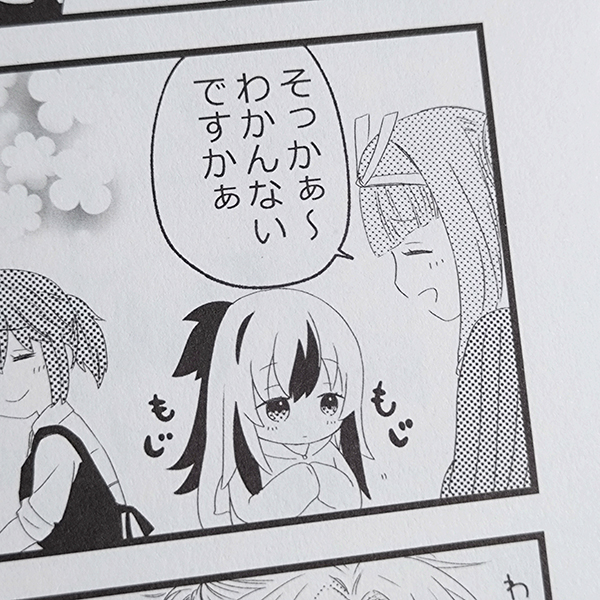 今回4コマ漫画でコマの一つ一つが小さく、描くときに拡大しまくったせいでしょうけど原稿の線が異様に細い…でもきれいに印刷されてる…ありがとうあかつき印刷さん…。これはお気に入りのコマ(というかけんしんちゃん)