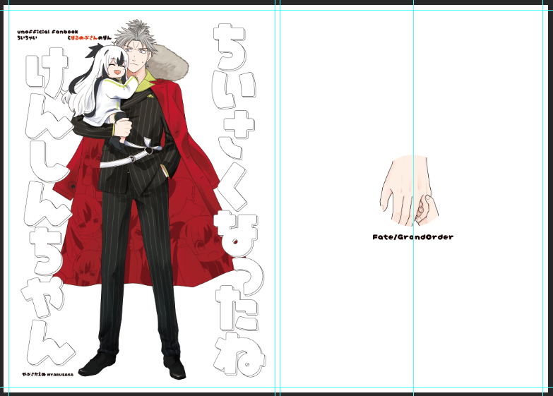でも原稿では背表紙の幅を表紙4からとるように作ってたんですが仕上がった本は表紙1と4からそれぞれ半分ずつ取られている…まあ文字が入っているわけでもないので別にいいか~(生き方が雑)
