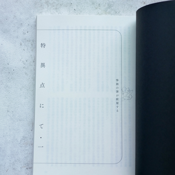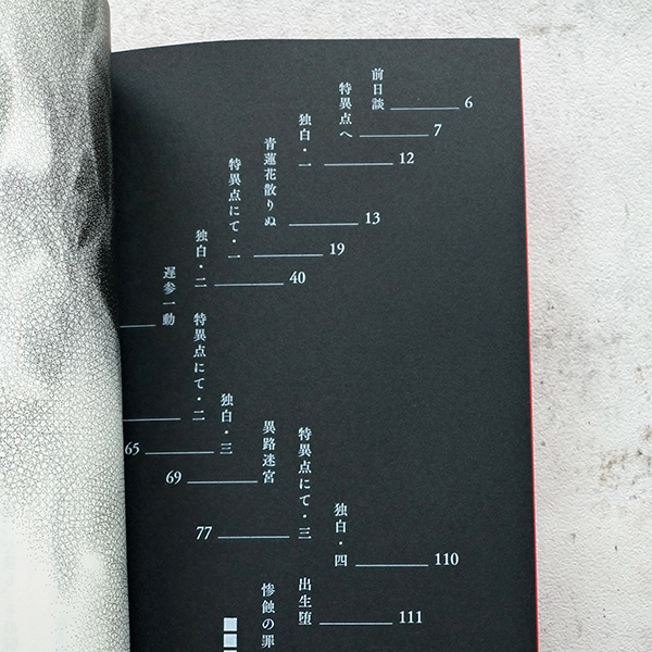 当初の予定では真っ白な表紙に空押しタイトルで漂白とか無垢さを表してみようかと考えていたんですが、ふと「待てよ…この悪夢ページだけ黒地に白印刷できたりしない⁉」と思いついたが最後でした。