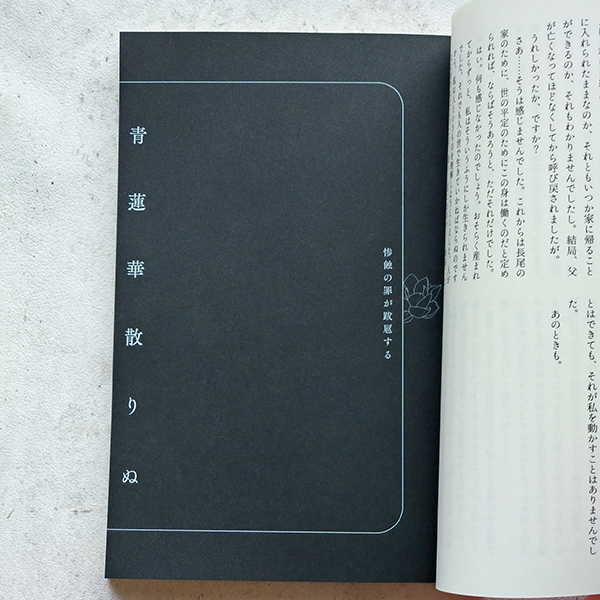 扉。蓮のイラスト、線が細いから飛ぶかも…って言われたけど大丈夫でした。飛んでかすれててもそれはそれでよかった。